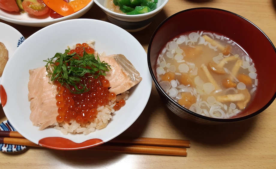 鮭を一緒に炊く方もいます。その辺は好みで鮭の大きさや煮る時間にもよります。